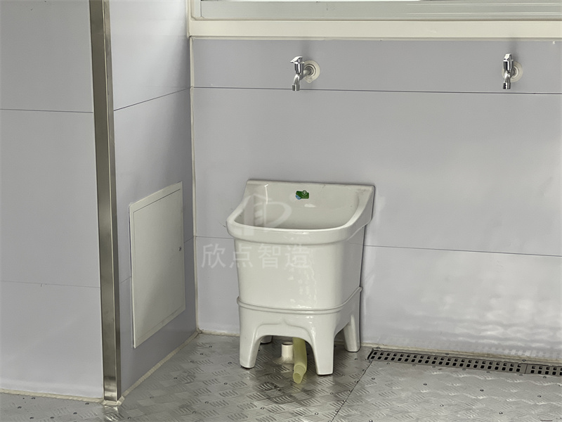 垃圾房內部配置:拖把池、不銹鋼水龍頭、排水溝